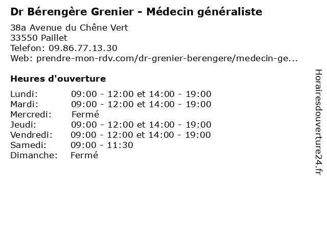 | Jeudi | 09:00-12:00 et 14:00-19:00 |