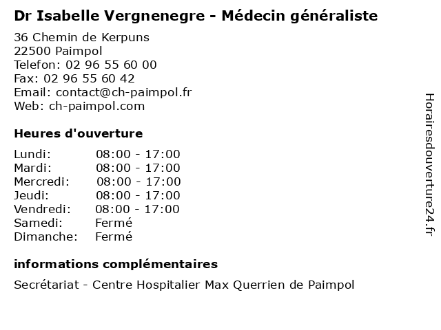 1 Dr Isabelle Randimbivahiny - Anesthésiste (Distance: 0,00 km) 36 Chemin de Kerpuns, 22500 Paimpol anesthésiste, consultation, docteur, dr, isabelle, med, médecin, médecine, randimbivahiny, traitement 2 Medecin Jean Louis Lespinasse (Médecin généraliste) (Distance: 14,38 km) 2 Boulevard Anatole le Braz, 22220 Treguier docteur, généraliste, jean, lespinasse, louis, medecin, médecin, sante, services 3 Medecin Paulick Neveu (Médecin généraliste) (Distance: 25,02 km) 12 Rue de la Passerelle, 22200 Guingamp docteur, généraliste, medecin, médecin, neveu, paulick, sante, services 4 Medecin Paulick Neveu - Consultation à domicile (Médecin généraliste) (Distance: 25,02 km) 12 Rue de la Passerelle, 22200 Guingamp consultation, docteur, domicile, généraliste, medecin, médecin, neveu, paulick, sante, services 5 Adecco Généraliste (Distance: 31,20 km) 18 Boulevard Louis Guilloux, 22300 Lannion adecco, agences, cdd, cdi, emploi, emploi intérim, généraliste, services 6 Dr Laurent Grall - Médecin généraliste (Distance: 38,78 km) 6 Rue du Stade, 22360 Langueux dr, grall, généraliste, laurent, médecin, médecine, médical, pharmaceutique, traitement |