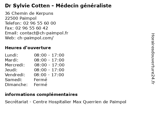 1 Sylvie Madec - Sage-femme (Distance: 0,00 km) 36 Chemin de Kerpuns, 22500 Paimpol consultation, docteur, femme, madec, med, médecin, médecine, sage, sylvie, traitement 2 Le Presto (Distance: 30,35 km) 26 Rue Du General De Gaulle, 22700 Perros Guirec brun, lirzin, presto, restaurants, sylvie 3 Sylvie Thiriez (Distance: 31,18 km) 7 Rue Chapeliers, 22300 Lannion décoration, linge de maison, services, sylvie, thiriez 4 Renaud Treupel Sylvie (Distance: 32,46 km) Rue De La Pile, 22440 La Meaugon renaud, restaurants, sylvie, treupel 5 Dr Sylvie Leble - ORL (Distance: 37,63 km) 10 Rue Marcel Proust, 22000 Saint-Brieuc consultation, docteur, dr, leble, med, médecin, médecine, orl, sylvie, traitement 6 Damagnez Sylvie (Distance: 37,72 km) Keranparc , 22300 Ploumilliau boucheries, damagnez, poissonneries, sylvie |