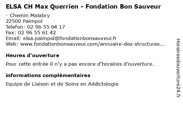 | Appeler ELSA CH Max Querrien - Fondation Bon Sauveur | |