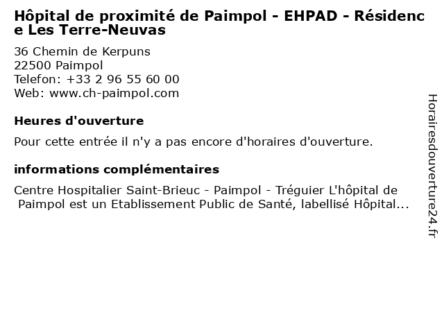 | Appeler Hôpital de proximité de Paimpol - EHPAD - Résidence Les Terre-Neuvas | |