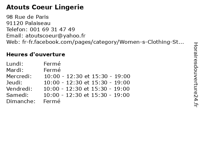 | Mercredi | 10:00-12:30 et 15:30-19:00 |