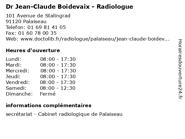 1 Dr Jean-Claude Boidevaix - Radiologue (Distance: 0,00 km) 101 Avenue de Stalingrad, 91120 Palaiseau boidevaix, claude, consultation, docteur, dr, jean, med, médecin, médecine, radiologue, secrétariat, traitement 2 Dr Jean-Claude Boidevaix - Radiologue (Distance: 0,01 km) 101 Avenue de Stalingrad, 91120 Palaiseau boidevaix, centre imagerie, claude, dr, jean, médecin, médecine, médical, pharmaceutique, radiologue, secretariat, traitement 3 Dr Jean-Claude Boidevaix - Radiologue (Distance: 8,63 km) 38 Avenue Jules Vallès, 91200 Athis-Mons boidevaix, claude, consultation, docteur, dr, jean, med, médecin, médecine, radiologue, traitement 4 Dr Jean-Claude Boidevaix - Radiologue (Distance: 9,53 km) 30-32 rue Monttessuy, 91260 Juvisy-sur-Orge boidevaix, claude, consultation, docteur, dr, jean, med, médecin, médecine, radiologue, traitement 5 Dr Jean-Claude Boidevaix - Radiologue (Distance: 12,30 km) 12 Rue du Clos, 91130 Ris-Orangis boidevaix, claude, dr, jean, médecins, médicaments, radiologue, santé, secrétariat, spécialiste 6 Dr Jean-Claude Boidevaix - Radiologue (Distance: 14,69 km) 5 Rue de la Clairière, 91000 Évry boidevaix, claude, dr, jean, médecins, médicaments, radiologue, santé, secrétariat, spécialiste |
