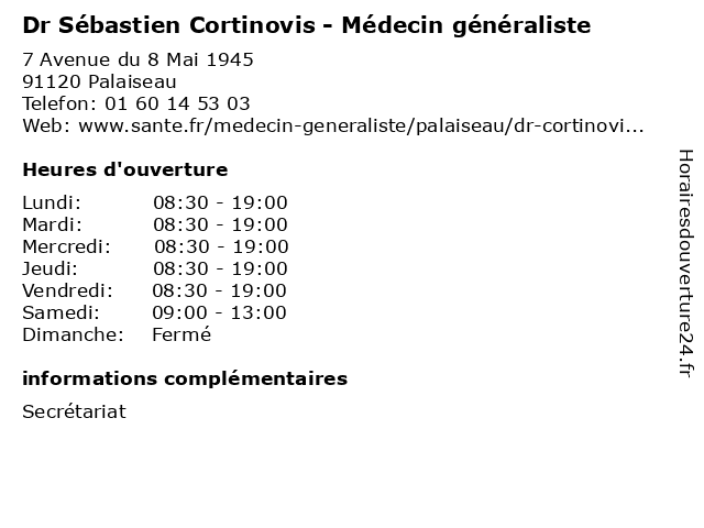 | Lundi | 08:30-19:00 |