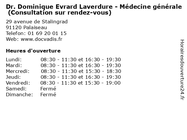 Termes de recherche pour Dr. Dominique Evrard Laverdure - Médecine générale (Consultation sur rendez-vous):sur, générale, vous, medecine, santé, rendez, dominique, docteur, dr., consultation, evrard, laverdure |