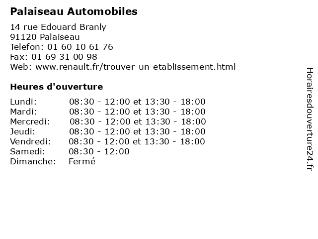 Lundi | 08:30-12:00 et 13:30-18:00 |