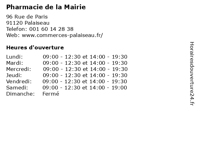 | Mardi | 09:00-12:30 et 14:00-19:30 |