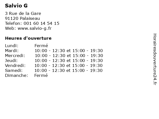 | Mardi | 10:00-12:30 et 15:00-19:30 |