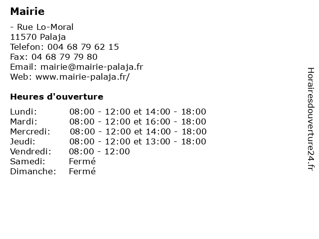 1 2 Mairie (Distance: 4,92 km) 3 rue de la Mairie, 11570 Villefloure administration, mairie, public, service 3 Mairie (Distance: 10,54 km) - Place de la Libération, 11600 Conques-sur-Orbiel administration, mairie, public, service 4 Mairie (Distance: 10,85 km) 10 avenue Georges-Degrand, 11800 Badens administration, mairie, public, service 5 Mairie (Distance: 11,93 km) 24 avenue de la Malepère, 11290 Alairac administration, mairie, public, service 6 Mairie (Distance: 12,12 km) 2 place de la Mairie, 11170 Caux-et-Sauzens administration, mairie, public, service |