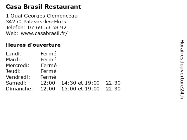 | Samedi | 12:00-14:30 et 19:00-22:30 |
