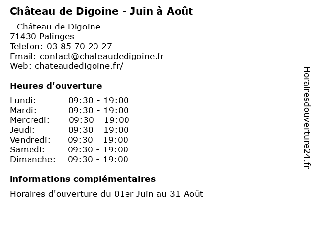 | Dimanche | 09:30-19:00 |