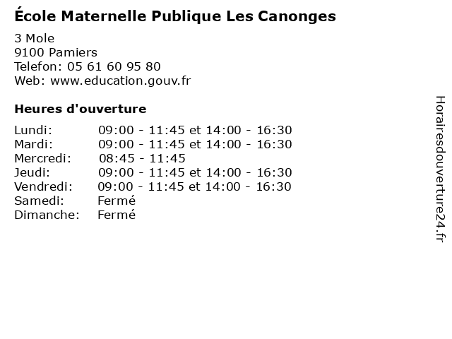 | Mardi | 09:00-11:45 et 14:00-16:30 |