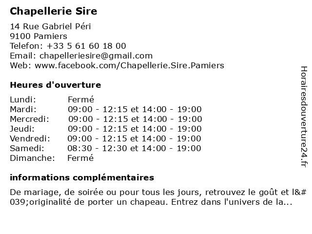 Termes de recherche pour Chapellerie Sire:sire, chapellerie |