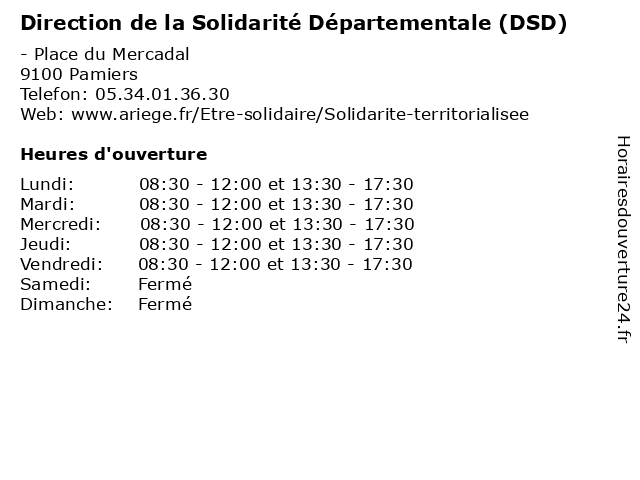 | Lundi | 08:30-12:00 et 13:30-17:30 |