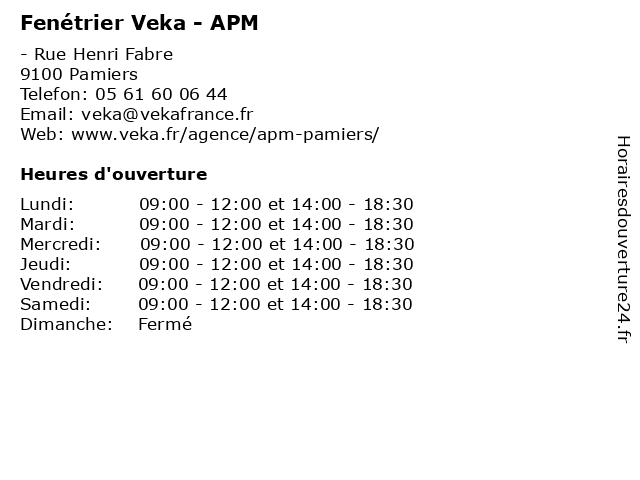 | Samedi | 09:00-12:00 et 14:00-18:30 |