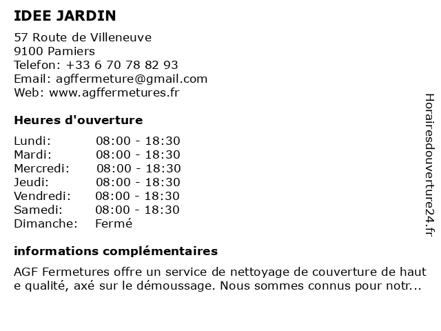 1 Au Jardin Fleuri (Distance: 18,52 km) 9 rue Théophile Delcassé, 09000 Foix au, fleuri, fleuristes, fleurs, jardin, jardineries, pépinières 2 Pharmacie du Jardin (Distance: 18,66 km) 15 Rue Bayle, 09000 Foix du, homéopathie, jardin, médicaments, orthopédie, parapharmacie, pharmacie 4 Action Pamiers (Distance: 3,66 km) 33 Route de Foix, 09100 Pamiers action, animaux domestiques, articles de sport, articles ménagers, boissons & alimentation, bricolage, cuisine, habitat, hobby, hygiène & beauté, jardin, jouets, mode, multimédia, pamiers, papeterie & bureau, voyages 5 Espace Emeraude (Distance: 4,55 km) 23 Avenue Des Pyrénées, 09100 Pamiers concessionnaire de remorques, emeraude, espace, fournisseur de matériel agricole, magasin de vêtements de travail, réparation de tondeuses à gazon, vente de tondeuses à gazon, équipements pour pelouse et jardin 6 Point Vert (Distance: 9,59 km) 52 B avenue du 8 mai 1945, 09120 Varilhes animalerie, barbecue, fleurs, jardin, jardinage, outillage, outils, plantes, point, vert |