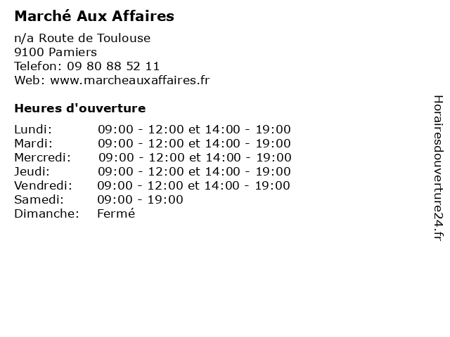 | Mardi | 09:00-12:00 et 14:00-19:00 |