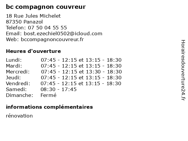 | Vendredi | 07:45-12:15 et 13:15-18:30 |