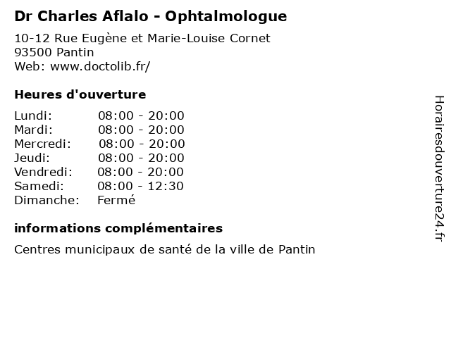 1 Dr Charles Paoli - Médecin généraliste (Distance: 0,00 km) 10-12 Rue Eugène et Marie-Louise Cornet, 93500 Pantin charles, dr, généraliste, médecin, médecine, médical, paoli, pharmaceutique, traitement 2 Dr Dominique Steratto - Ophtalmologue (Distance: 0,30 km) 1 Rue Hoche, 93500 Pantin dominique, dr, ophtalmologie, ophtalmologistes, ophtalmologue, steratto, vision 3 Dr Julien Tilleul - Ophtalmologue (Distance: 0,37 km) 14 Allée des Ateliers, 93500 Pantin dr, julien, ophtalmologie, ophtalmologistes, ophtalmologue, tilleul, vision 4 Dr Julien Tilleul - Ophtalmologue (Distance: 0,38 km) 14 Allée des Ateliers, 93500 Pantin autre, consultation, docteur, dr, julien, julientilleul, médecins, ophtalmologie, ophtalmologue, santé, tilleul 5 Dr Martine Lehrer - Ophtalmologue (Distance: 1,88 km) 55 Rue Henri Barbusse, 93300 Aubervilliers dr, lehrer, martine, médecin, médecine, médical, ophtalmologue, pharmaceutique, traitement 6 Dr Jean-François Schemann - Ophtalmologue (Distance: 1,92 km) 4 Rue de Thionville, 75019 Paris docteur, dr, françois, jean, médecin, ophtalmologie, ophtalmologue, schemann |