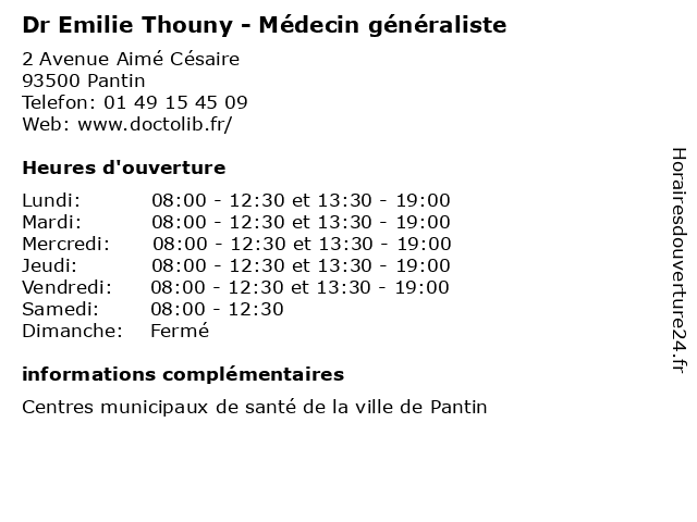 | Mercredi | 08:00-12:30 et 13:30-19:00 |