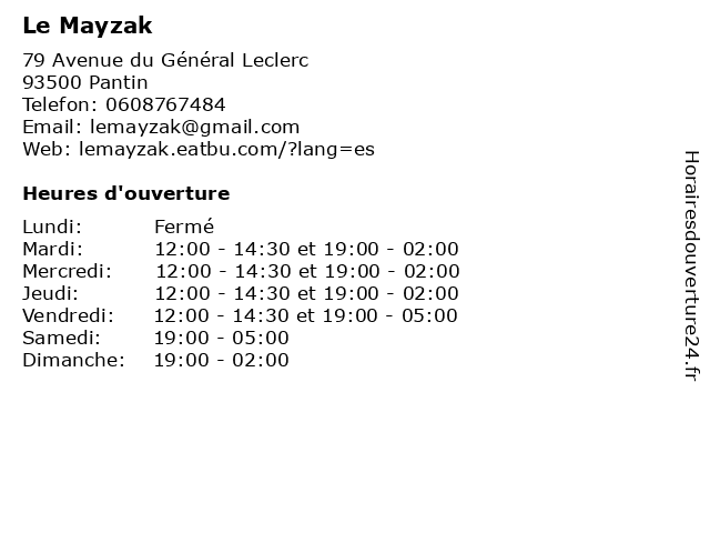 | Mardi | 12:00-14:30 et 19:00-02:00 |