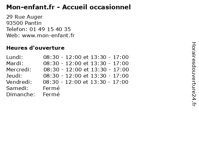 | Lundi | 08:30-12:00 et 13:30-17:00 |