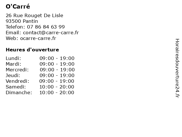 | Lundi | 09:00-19:00 |