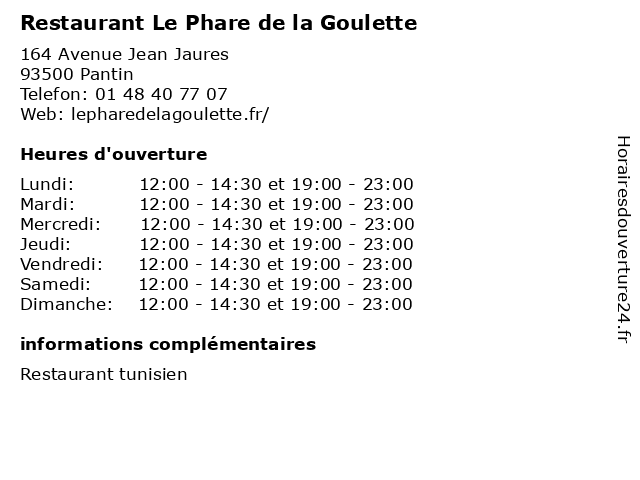 | Dimanche | 12:00-14:30 et 19:00-23:00 |