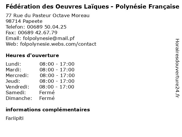 Termes de recherche pour Fédération des Oeuvres Laïques - Polynésie Française:la, des, loisirs, française, association, fédération, dons, oeuvres, enseignement, aides, laiques, polynesie |