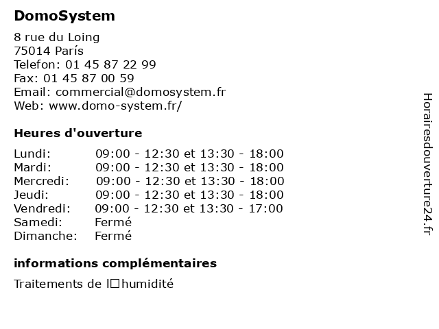 | Lundi | 09:00-12:30 et 13:30-18:00 |
