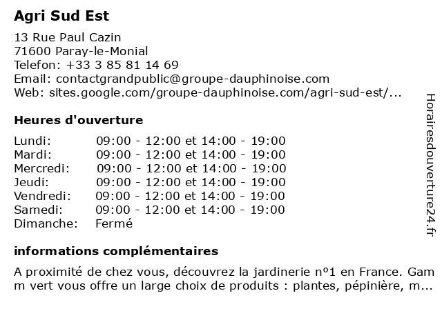 | Samedi | 09:00-12:00 et 14:00-19:00 |