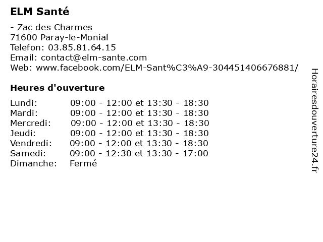 Lundi | 09:00-12:00 et 13:30-18:30 |