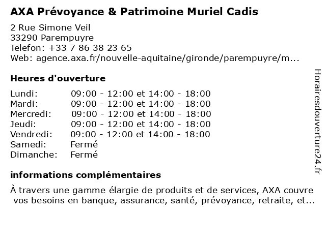 | Mardi | 09:00-12:00 et 14:00-18:00 |