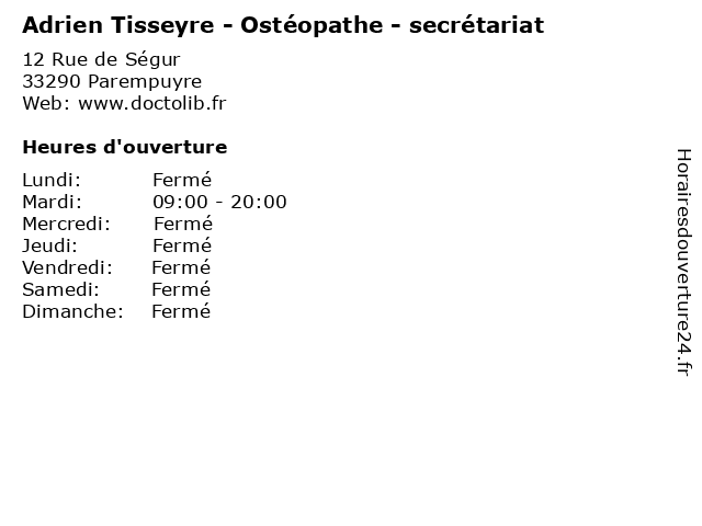 Termes de recherche pour Adrien Tisseyre - Ostéopathe - secrétariat:service, care, secretariat, health, adrien, ostéopathe, tisseyre |