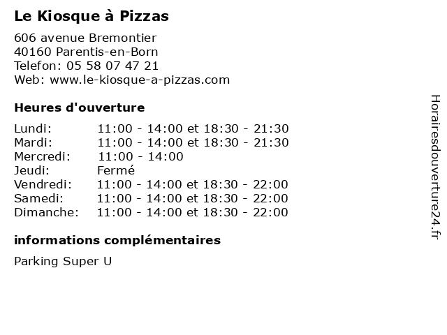 | Samedi | 11:00-14:00 et 18:30-22:00 |