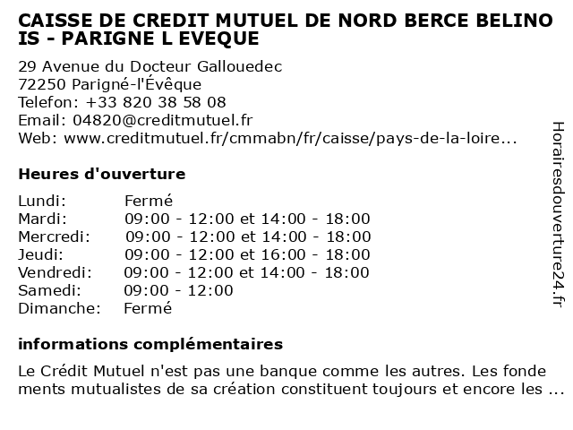 Termes de recherche pour CAISSE DE CREDIT MUTUEL DE NORD BERCE BELINOIS - PARIGNE L EVEQUE:de, nord, eveque, crédit, mutuel, caisse, bercé, bélinois, parigné |