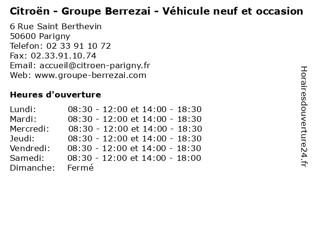 | Lundi | 08:30-12:00 et 14:00-18:30 |