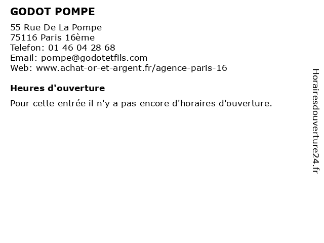 1 Quincaillerie Serrurerie de la Pompe (Distance: 0,01 km) 168 rue Pompe, 75116 Paris de, la, pompe, quincaillerie, serrurerie 2 Boutique Fursac rue de la Pompe (Distance: 0,17 km) 122 Rue de la Pompe, 75016 Paris boutique, de, fursac, la, pompe, rue 3 Parking Indigo Paris Victor Hugo Pompe (Distance: 0,27 km) 120 Avenue Victor Hugo, 75016 Paris borne de recharge pour véhicules électriques, hugo, indigo, paris, parking, pompe, victor 4 Pompes funèbres PFG PARIS 16 - Rue de la Pompe (Distance: 0,27 km) 80 Rue de la Pompe, 75016 Paris 16, avis de décès, crémation, de, entretien de sépulture, fleurs deuil, formalités après obsèques, funèbres, inhumation, la, marbrerie, monument funéraire, paris, pfg, pompe, pompes, pompes funèbres, prévoyance obsèques, rue 5 Sofradom - Domiciliation d'entreprise - Agence Paris 16 - La Pompe (Distance: 0,29 km) 76 Rue de la Pompe, 75116 Paris 16, agence, d'entreprise, domiciliation, la, paris, pompe, sofradom 6 Pompe Labo Services (Distance: 0,33 km) 66 Rue de la Pompe, 75116 Paris labo, laboratoires, photo, photographiques, pompe, révélé, services |