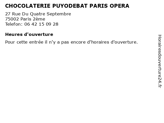 | Appeler CHOCOLATERIE PUYODEBAT PARIS OPERA | |