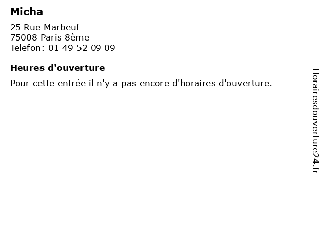 1 Les Délices De Micha (Distance: 3,85 km) 45 Boulevard de la Chapelle, 75010 Paris bar, bistro, bistrot, brasserie, café, de, délices, les, micha, restaurant, restauration 2 Micha Stafford - Psychologue (Distance: 5,71 km) 27 Rue de la Paix, 92270 Bois-Colombes micha, psy, psychiatre, psychologue, sante, soins, stafford |