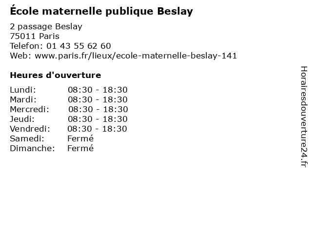 1 Crèche Kiddies Beslay (Distance: 0,13 km) 19 passage Beslay, 75011 Paris beslay, crèche, crèches, kiddies, services, services à la personne 2 Beslay Restaurant (Distance: 0,17 km) 67 Avenue Parmentier, 75011 Paris beslay, restaurant, restaurants 3 Maître Julien Beslay - Avocat (Distance: 1,62 km) 15 rue de Palestro, 75002 Paris avocat, avocats, beslay, cabinet, conseils, contentieux, julien, juridique, justice, litiges, maître, services 5 École élémentaire publique Pihet (Distance: 0,06 km) 1 Rue Pihet, 75011 Paris cours, pihet, publique, servicios, école, élémentaire 6 École élémentaire publique Parmentier (Distance: 0,51 km) 109 Avenue Parmentier, 75011 Paris cours, parmentier, publique, servicios, école, élémentaire |