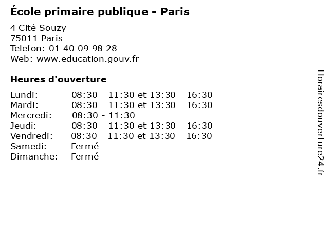 1 École primaire publique - Paris (Distance: 0,12 km) 8 Cité Voltaire, 75011 Paris ecole, education, maternelle, paris, primaire, publique, services, école 2 École primaire publique - Paris (Distance: 0,38 km) 39 Rue Alexandre Dumas, 75011 Paris ecole, education, maternelle, paris, primaire, publique, services, école 3 École primaire publique - Paris (Distance: 0,39 km) 18 Rue Faidherbe, 75011 Paris ecole, education, maternelle, paris, primaire, publique, services, école 4 École primaire publique - Paris (Distance: 0,56 km) 44 Rue Émile Lepeu, 75011 Paris ecole, education, maternelle, paris, primaire, publique, services, école 5 École primaire publique - Paris (Distance: 0,58 km) 4 Avenue de Bouvines, 75011 Paris ecole, education, maternelle, paris, primaire, publique, services, école 6 École primaire publique - Paris (Distance: 0,78 km) 35 Rue Godefroy Cavaignac, 75011 Paris ecole, education, maternelle, paris, primaire, publique, services, école |