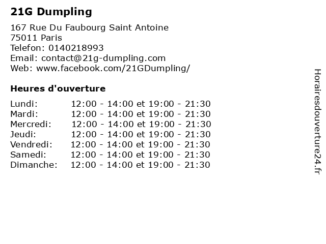 | Dimanche | 12:00-14:00 et 19:00-21:30 |