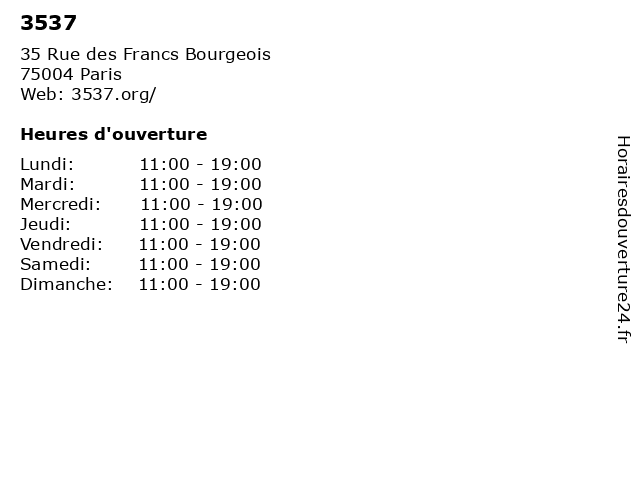 | Mercredi | 11:00-19:00 |