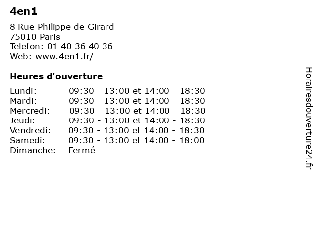 | Lundi | 09:30-13:00 et 14:00-18:30 |