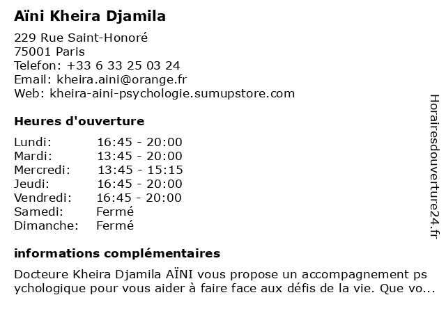 1 Dr Kheira Brahimi - Cardiologue (Distance: 0,68 km) 9 Rue Boudreau, 75009 Paris brahimi, cardiologue, consultation, docteur, dr, kheira, med, médecin, traitement 2 Dr Kheira Bensalem - Oto-Rhino-Laryngologue (O.R.L) (Distance: 0,68 km) 9 Rue Boudreau, 75009 Paris bensalem, consultation, docteur, dr, kheira, laryngologue, med, médecin, o.r.l, oto, rhino, traitement 3 Dr Djamila Zerkak - Rhumatologue (Distance: 0,73 km) 12 rue de la Chaussée d'Antin, 75009 Paris djalila, djamila, dr, paris, rhumatologue, zerkak 4 Maître Djamila Bouchenafa - Avocate (Distance: 1,03 km) 5/7 Avenue du Coq, 75009 Paris avocat, avocate, bouchenafa, djamila, droit, maître, négociation 5 Dr Kheira Bensalem - Oto-rhino-laryngologiste (Distance: 1,57 km) 29 Rue de Turbigo, 75002 Paris bensalem, dr, kheira, laryngologiste, médecin, médecine, médical, oto, pharmaceutique, rhino, traitement 6 Maître Djamila Aimeur - Avocate (Distance: 1,62 km) 54 boulevard de Sébastopol, 75003 Paris aimeur, avocate, avocats, cabinet, conseils, contentieux, djamila, juridique, justice, litiges, maître, services |