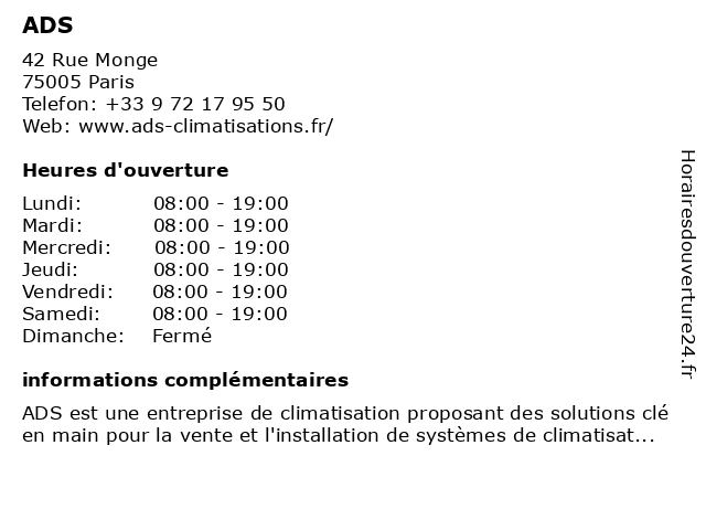 ADS est une entreprise de climatisation proposant des solutions clé en main pour la vente et l'installation de systèmes de climatisation. Nous sommes experts dans notre domaine et travaillons pou...