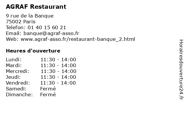 1 AGRAF Restaurant (Distance: 0,49 km) 9 rue d'Uzès, 75002 Paris a.g.r.a.f, agraf, café, cafétéria, déjeuner, entreprise, menus, restaurant, restauration 2 AGRAF Restaurant (Distance: 3,40 km) 4 Rue Boucry, 75018 Paris a.g.r.a.f, agraf, association, finance, restaurant, restauration 3 AGRAF Restaurant (Distance: 3,93 km) 15 rue du Général Beuret, 75015 Paris a.g.r.a.f, agraf, café, cafétéria, déjeuner, entreprise, menus, restaurant, restauration 4 AGRAF Restaurant (Distance: 6,06 km) 67 Rue Barbes, 94200 Ivry-sur-Seine a.g.r.a.f, agraf, association, finance, restaurant, restauration 5 AGRAF Restaurant (Distance: 6,19 km) 10 rue Auguste Blanqui, 93100 Montreuil a.g.r.a.f, agraf, café, cafétéria, déjeuner, entreprise, menus, restaurant, restauration 6 AGRAF Restaurant (Distance: 12,95 km) 9 avenue des Arts, 94100 Saint-Maur a.g.r.a.f, agraf, café, cafétéria, déjeuner, entreprise, menus, restaurant, restauration |