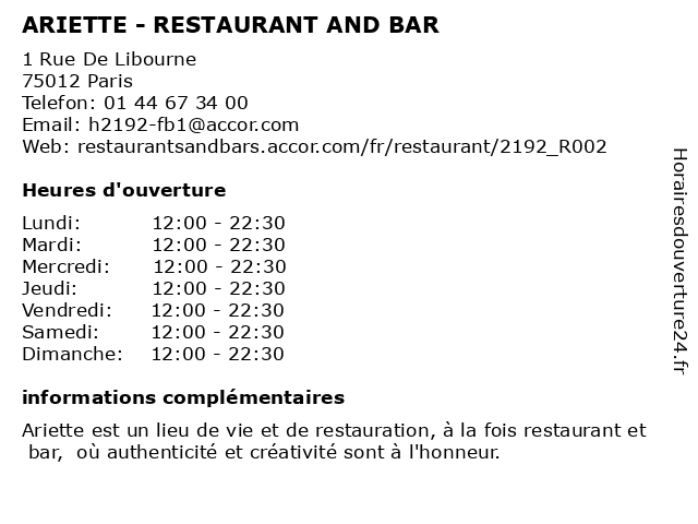 Termes de recherche pour ARIETTE - RESTAURANT AND BAR:restaurant, bar, and, ariette |