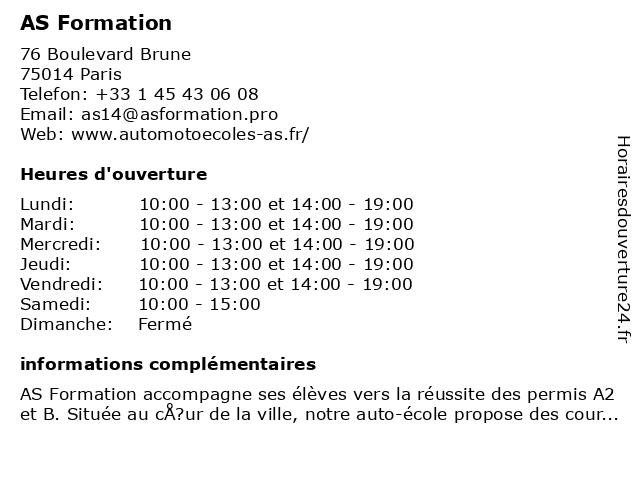 | Lundi | 10:00-13:00 et 14:00-19:00 |